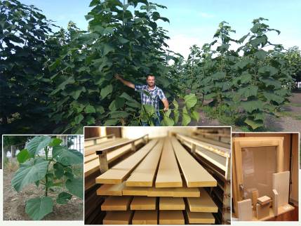 4-5 éves törzs esetében az egy fából kinyerhető fűrészáru mennyisége 0,3-0,35 m3. Ha a vágásforduló kitolódik, akkor 7-8 éve fatörzsek akár 0,5 m3 szélezett fűrészárut is képesek adni. Matematika nyelvére fordítva, ha a jelen piaci árakat veszem alapul, akkor egy m3 jó minőségű Paulownia fűrészáru ára el kell, hogy érje a minimum 85 000-90 000 Ft/m3 árat. Ezt hektárra kivetítve a különböző vágási időszakokkal számolva. 180 – 250 m3 faanyagot jelent. Bevételem vágásfordulónként 15 300 000 Ft tól felfele várható. A feldolgozás mértékétől függően ez a szám ennél még magasabb is lehet. Elsőre kicsit soknak hangzik, de ez egy normál erdészeti kultúrában egyáltalán nem kimagasló. Középárnak számít. Nagy előnyünk az erdőkkel szemben, hogy itt a vágásra, és a bevételre nem kell várnom 30-40 évet. Szinte ugyanaz a profit érhető el lényegesen rövidebb idő alatt.